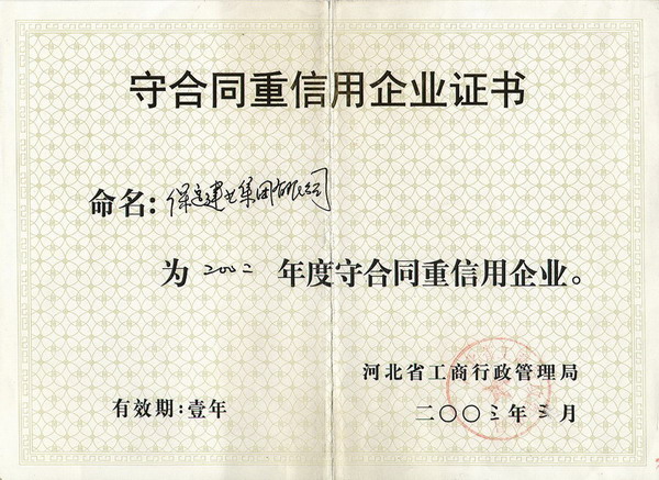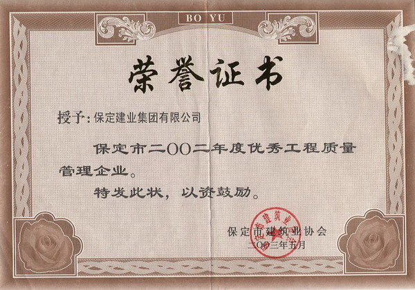 02年度省百強(qiáng)優(yōu)秀企業(yè)證書