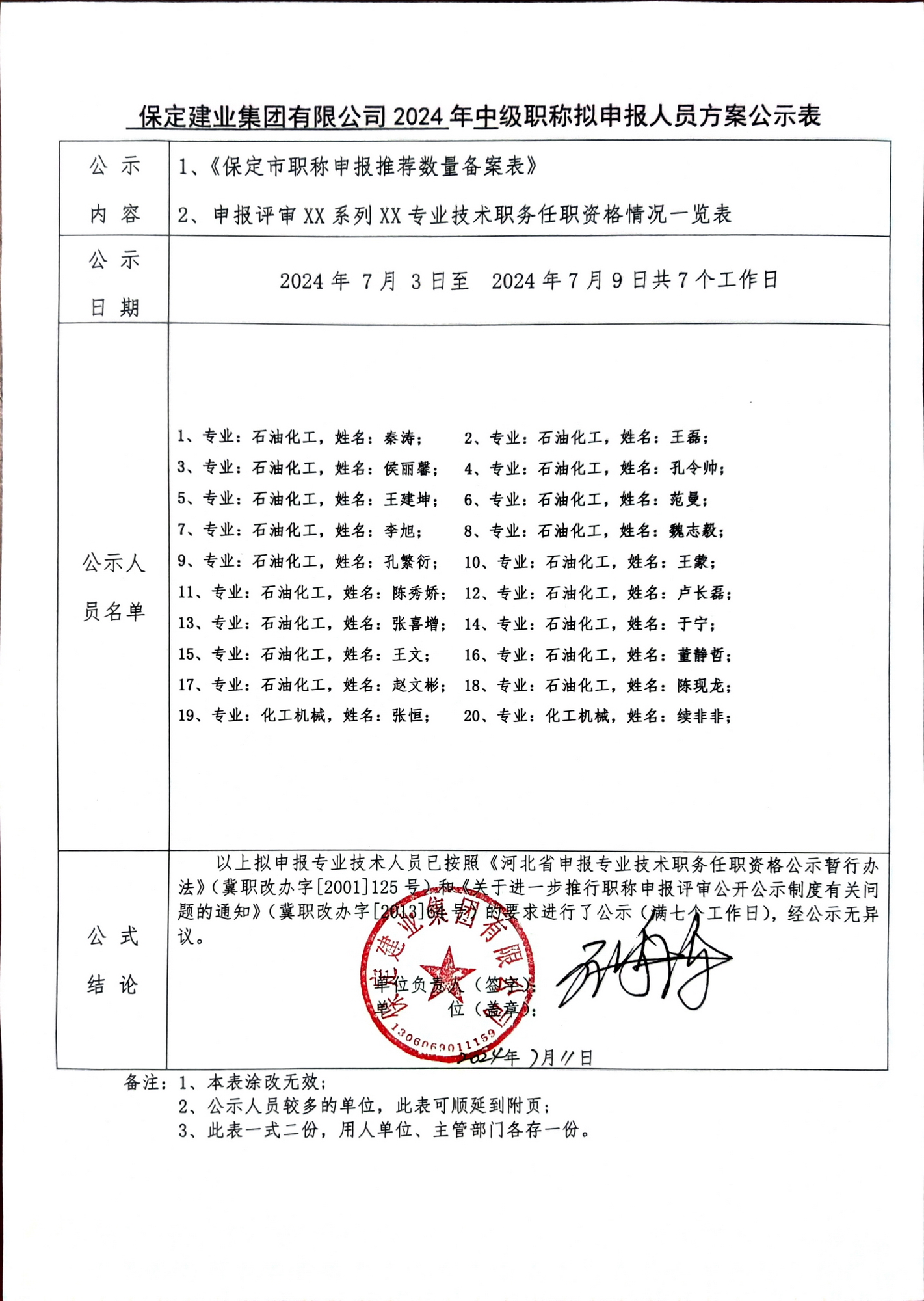 2024年中級(jí)職稱擬申報(bào)人員方案公示-石化系列