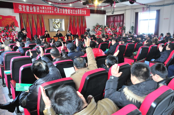 大會在莊嚴(yán)的國歌聲中拉開了序幕,首先由集團(tuán)公司副總經(jīng)理邸京朝做《二零一一年度工作總結(jié)(草案)》,總會計師于廣志做《二零一一年度財務(wù)工作報告》,監(jiān)事會主席閆雙彥做《二零一一年度財務(wù)審核報告》,總經(jīng)濟(jì)師李莉做《二零一一年工作安排意見的報告(草案)》,工會主席黃春玲做《二零一一年度職代會工作總結(jié)及二零一二年度工作安排報告(草案)》。隨后全體與會代表對上述報告進(jìn)行舉手表決,均全票通過。隨后由集團(tuán)下屬分公司經(jīng)理代表與集團(tuán)公司簽訂了2012年經(jīng)濟(jì)生產(chǎn)責(zé)任狀。會后,集團(tuán)公司董事長兼黨委書記張?zhí)m柱同志做重要講話,總結(jié)了集團(tuán)公司在二零一一年工作中的經(jīng)驗(yàn)與不足,激勵廣大職工、股東代表在新的一年里為企業(yè)的快速發(fā)展繼續(xù)作好排頭兵、發(fā)揮表率作用,與廣大員工一起為集團(tuán)公司貢獻(xiàn)力量。