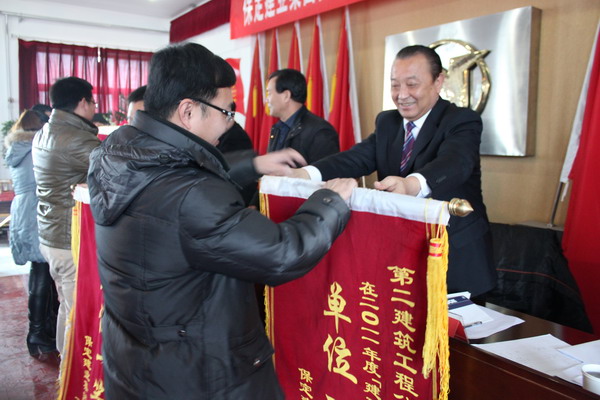 在隨后舉行的二零一一年度集團(tuán)表彰大會上,由黨委副書記閆雙彥宣讀了“二零一一年度建功立業(yè)表彰決定”,并由集團(tuán)公司領(lǐng)導(dǎo)對獲獎單位頒發(fā)了錦旗和獎狀。